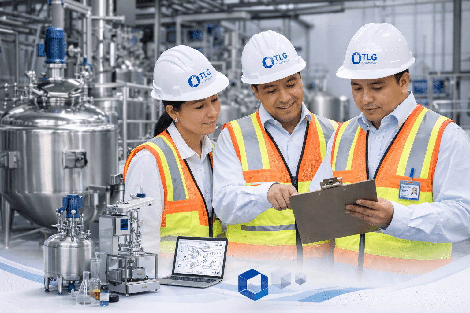 •Línea de procesos batch con reactores industriales y laboratorio.
